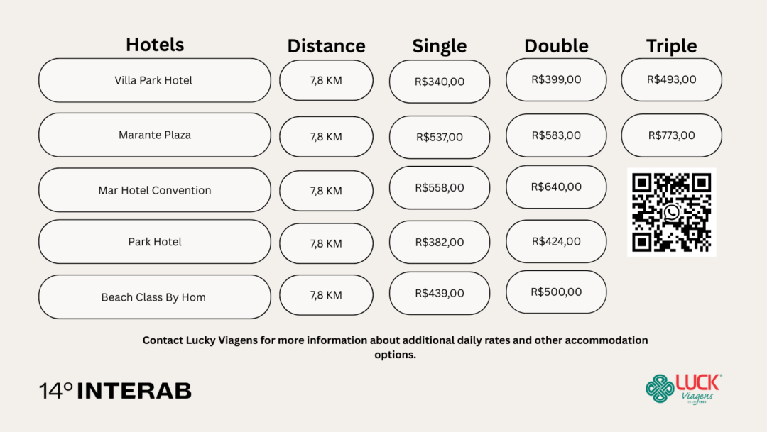 - Triple room: R$ 240.00 (breakfast included) — rate per person: R$ 80.00